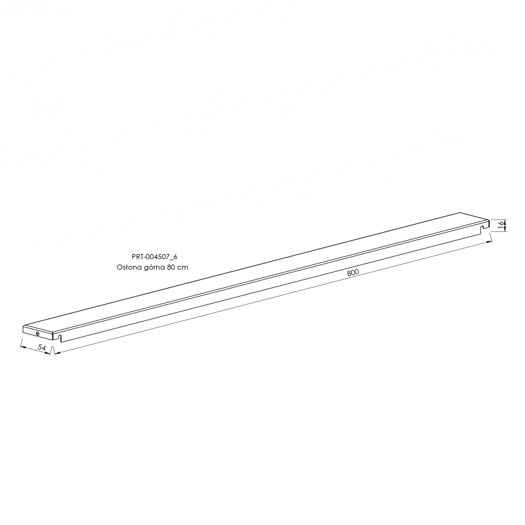 Metalowa maskownica o długości 80 cm montowana na szczycie konstrukcji regału, łącząca przeciwległe segmenty pleców. Poprawia stabilność regału, ukrywa miejsca łączenia oraz zapobiega gromadzeniu się kurzu w trudnodostępnych zakamarkach konstrukcji.