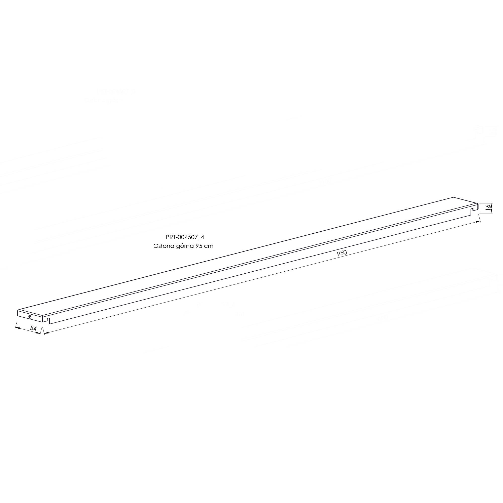 Metalowa maskownica o długości 95 cm montowana na szczycie konstrukcji regału, łącząca przeciwległe segmenty pleców. Poprawia stabilność regału, ukrywa miejsca łączenia oraz zapobiega gromadzeniu się kurzu w trudnodostępnych zakamarkach konstrukcji.