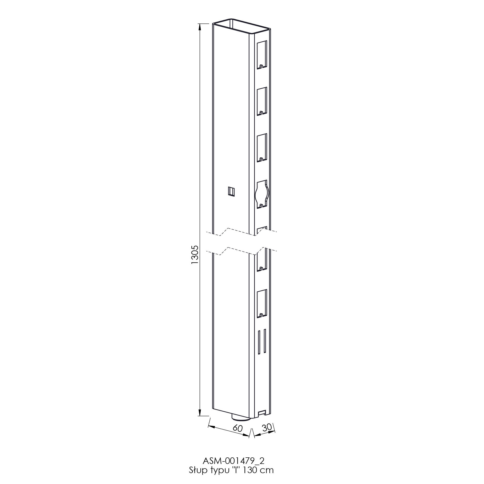 Pionowy słup o długości 130 cm. Wzdłuż jednej ze ścian słupa, umieszczone zostały perforacje pozwalające na zamontowanie w nich wsporników półkowych lub segmentów tylnych. Słup typu „I” stosowany jest gdy nie jest konieczne bezpośrednie połączenie profilu pionowego ze stopą.