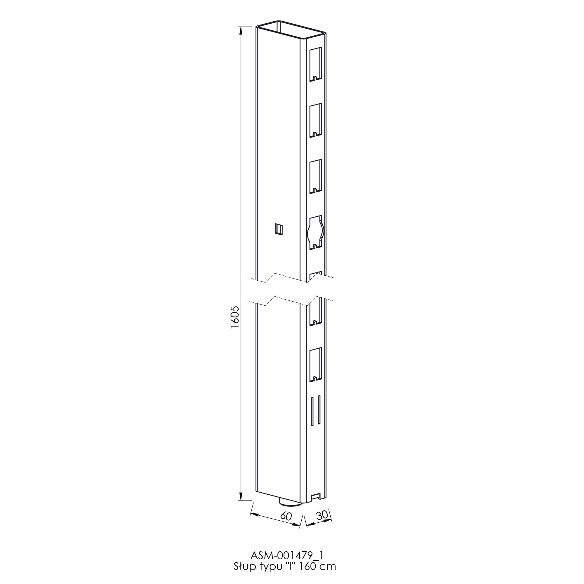 Pionowy słup o długości 160 cm. Wzdłuż jednej ze ścian słupa, umieszczone zostały perforacje pozwalające na zamontowanie w nich wsporników półkowych lub segmentów tylnych. Słup typu „I” stosowany jest gdy nie jest konieczne bezpośrednie połączenie profilu pionowego ze stopą.