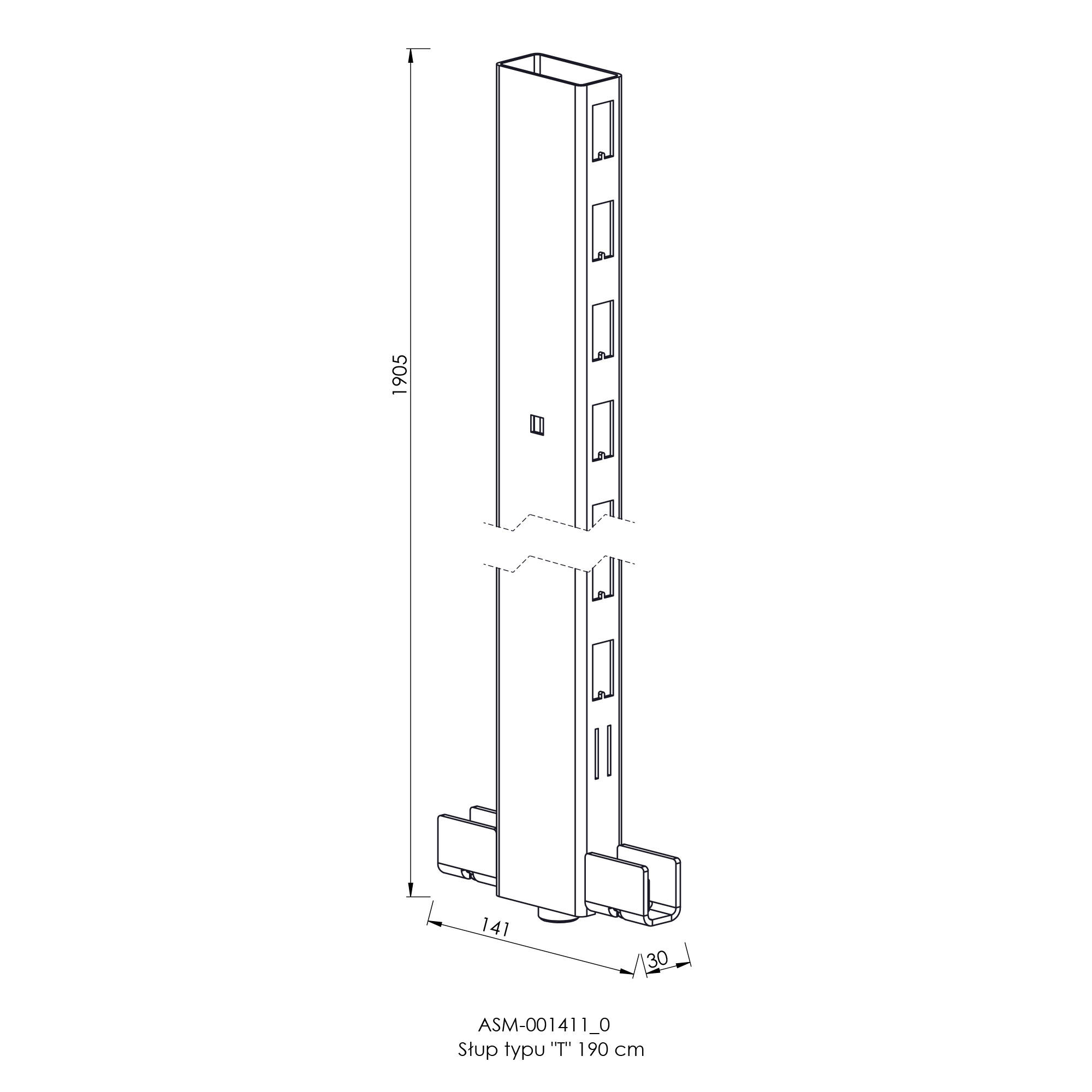 Pionowy słup o długości 190 cm dwustronnie zakończony zaczepami umożliwiającymi połączenie go ze stopami. Stosowany m.in. w konstrukcjach wolnostojących regałów typu „wyspa”. Wzdłuż obu ścian na których znajdują się zaczepy umieszczone zostały perforacje pozwalające na zamontowanie w nich wsporników półkowych lub segmentów tylnych.