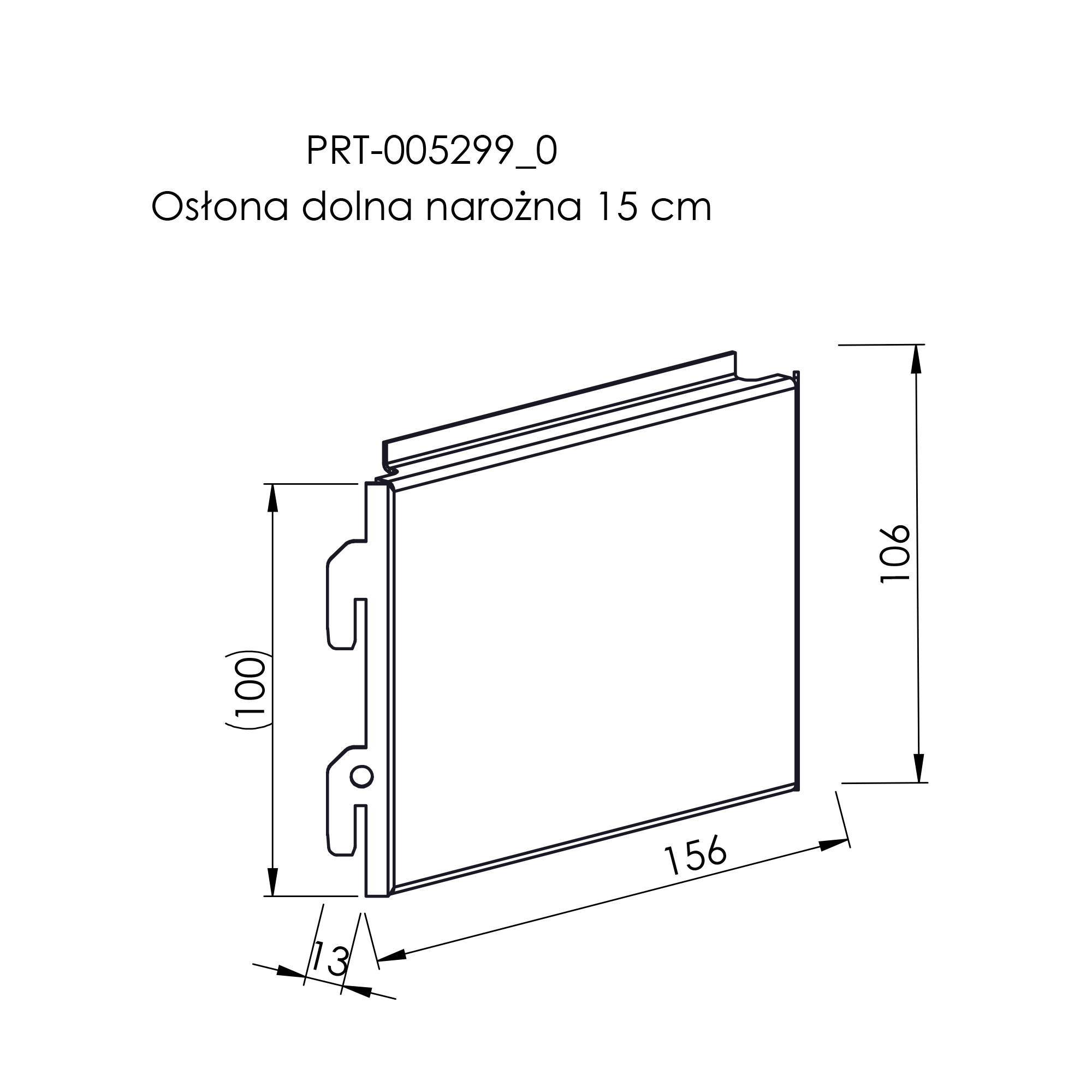 Metalowa maskownica o długości 15 cm montowana u podstawy konstrukcji regału, łącząca dwie stopy. Element dedykowany modułów narożnych. Poprawia stabilność regału, ukrywa miejsca łączenia oraz zapobiega gromadzeniu się kurzu w trudnodostępnych zakamarkach konstrukcji.